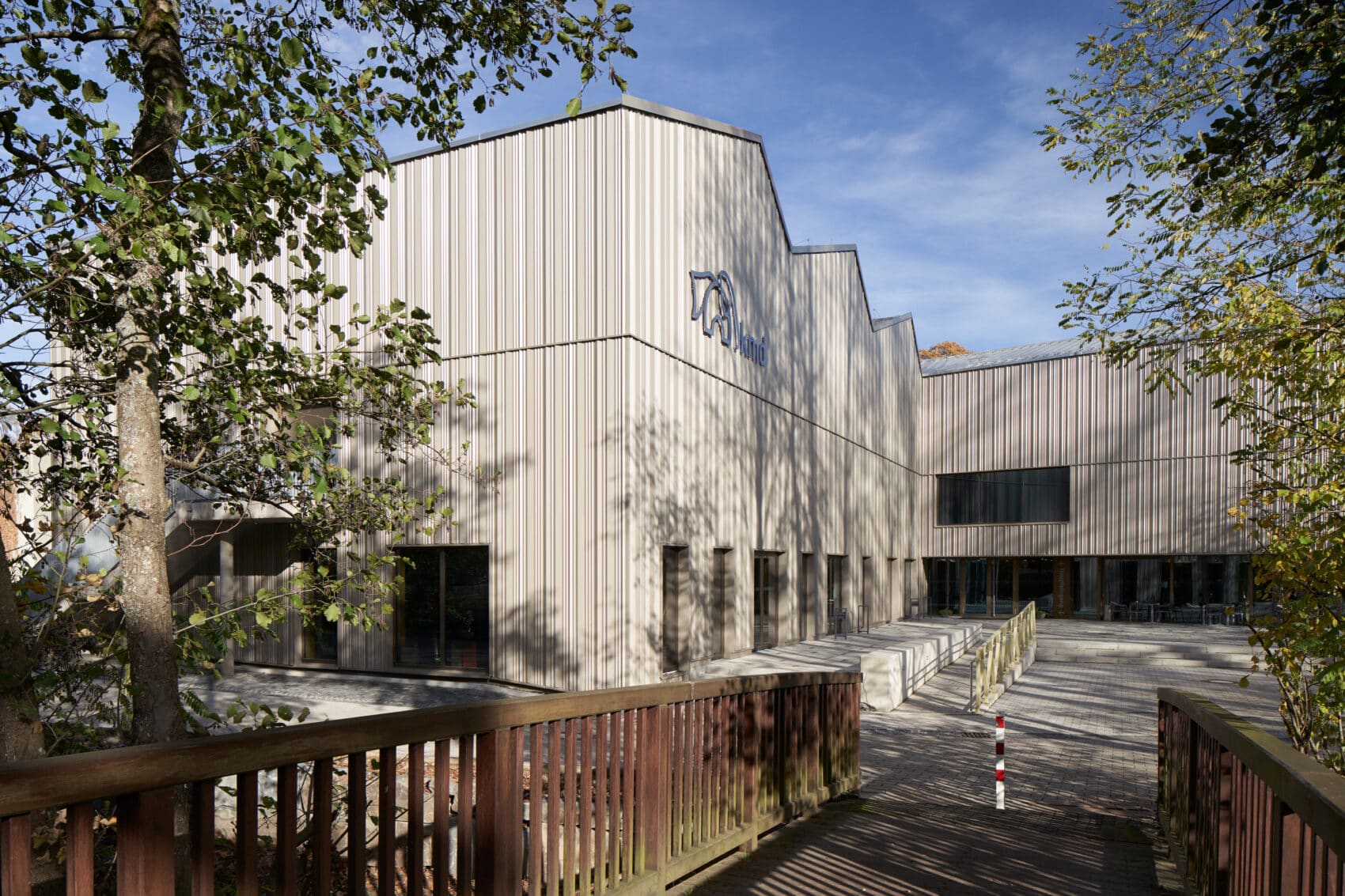 Das neu eingefügte Foyerbauwerk bildet das Zentrum der Anlage, gleichsam den inneren Marktplatz, auf den alle Funktionen des Zentrums orientiert sind. Dieser Eingriff erzeugt einen neuen räumlichen und inhaltlichen Zusammenhang zwischen den bestehenden Gebäuden, sie werden neu gedeutet und in ein lesbares Raumgefüge eingebunden.